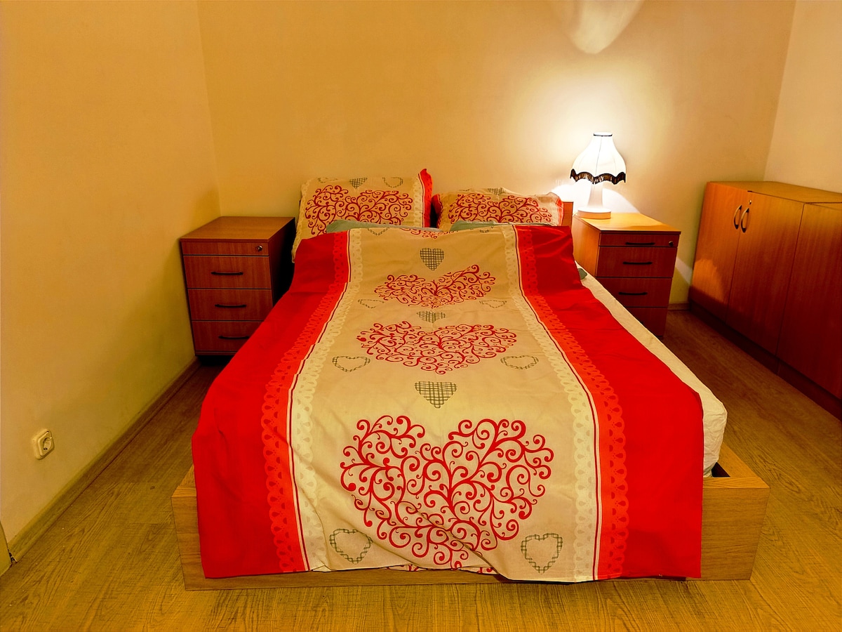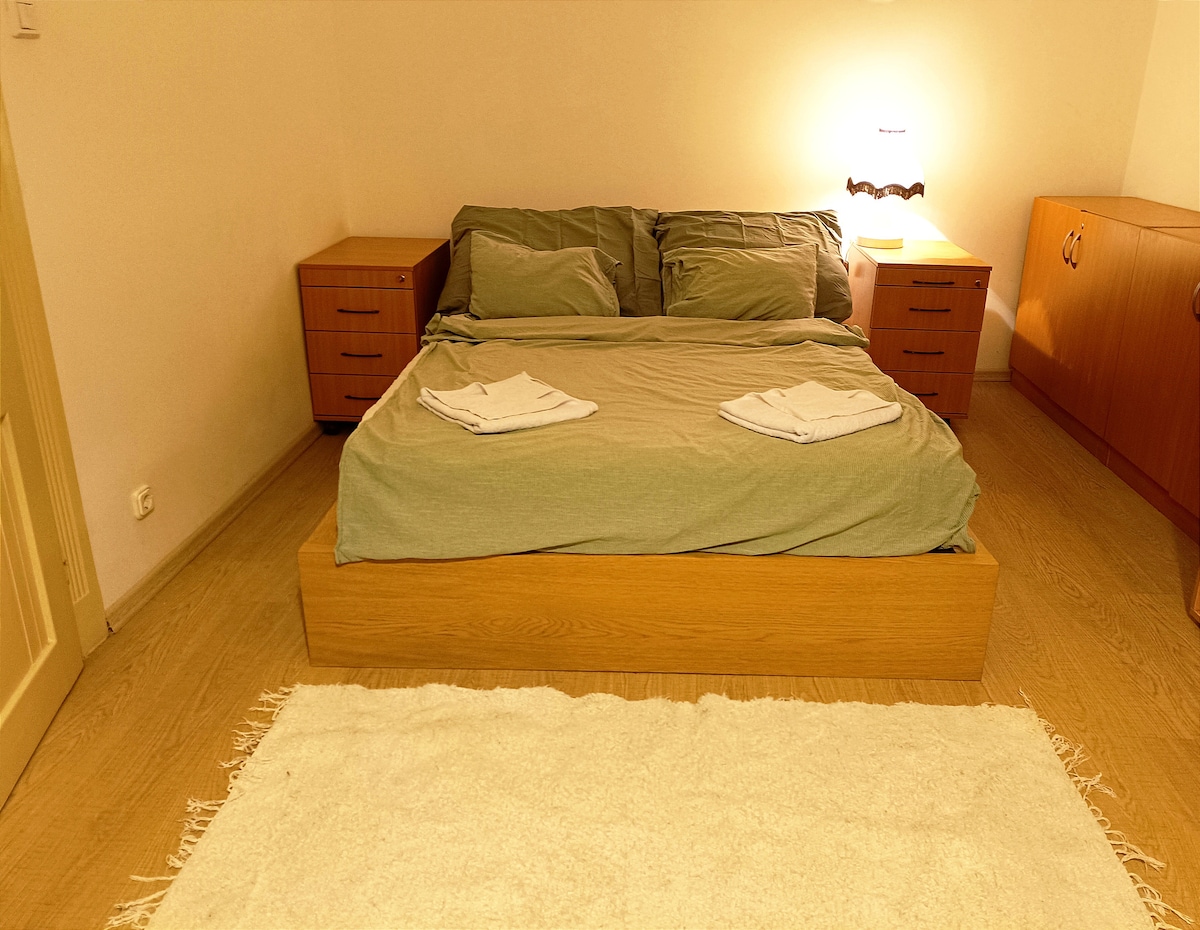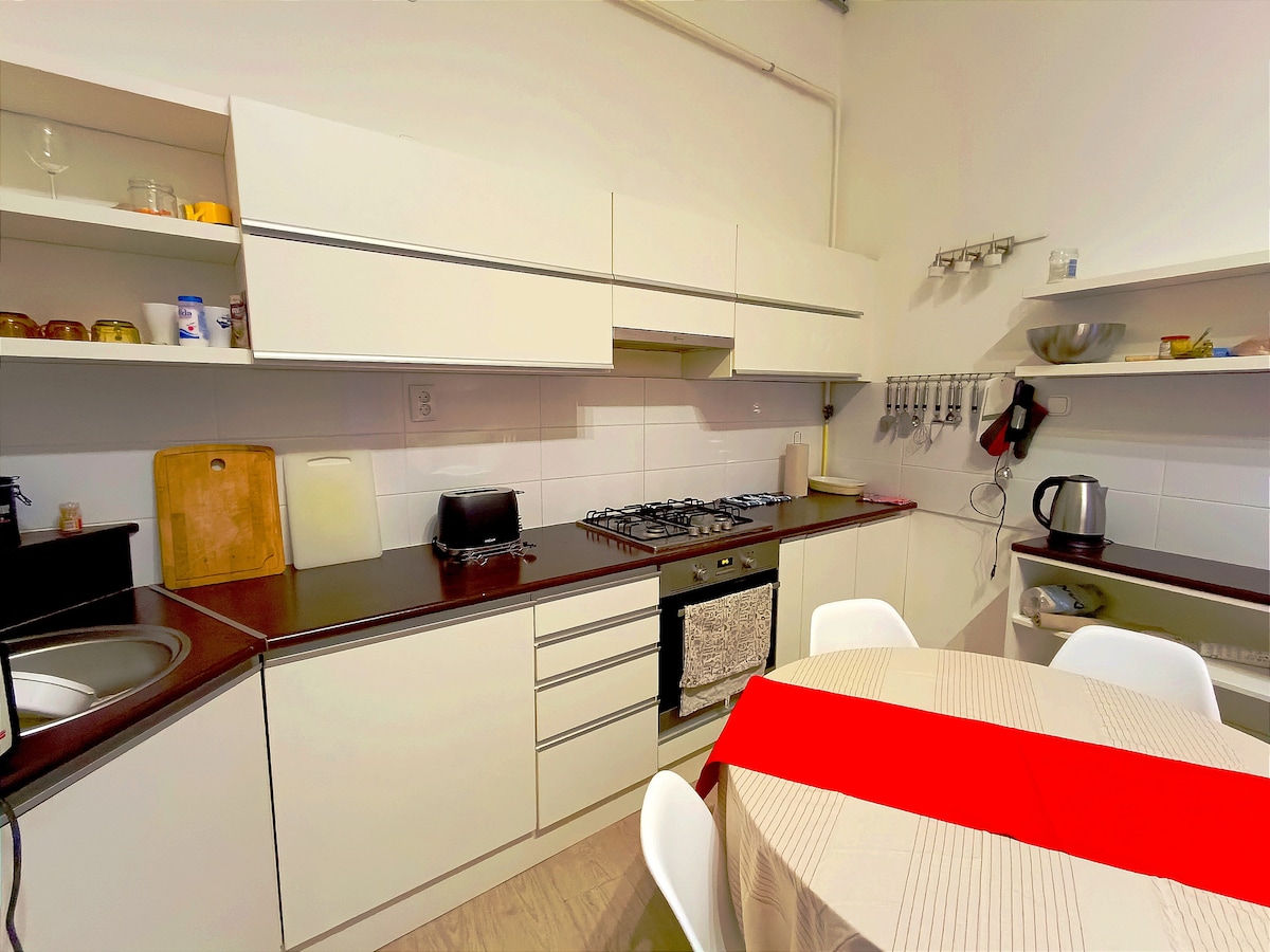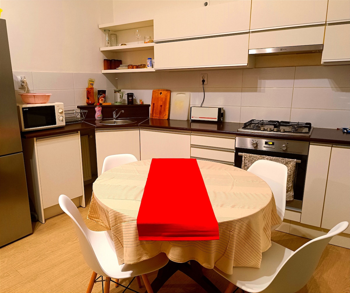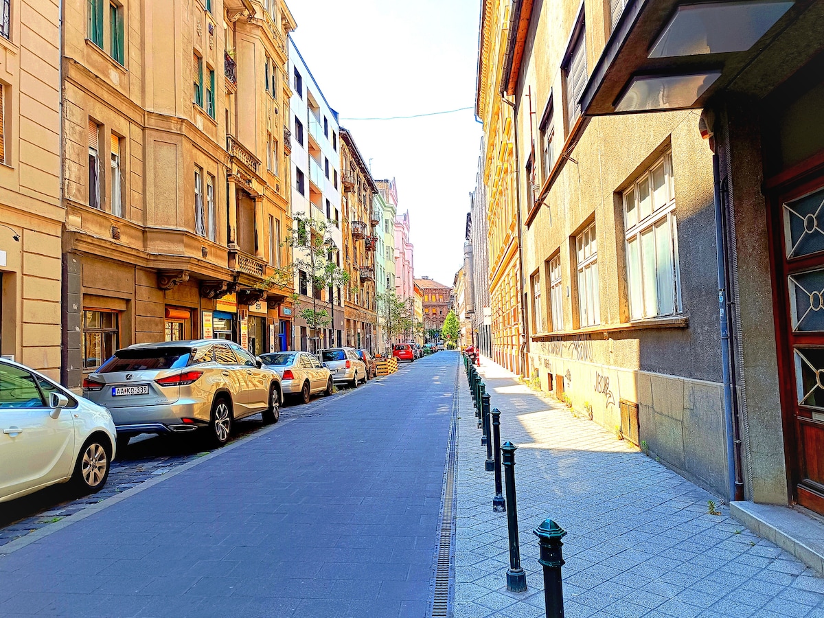This lovely flat is located in the heart of District 8 close to Gutenberg square in an area known as the Palace Quarter. The flat is a few minutes from the 4,6 tram line which runs 24 hours a day and takes you through many interesting sights. The flat is located on the mezzanine level of a large classic building which was built in the late 1900’s. The area is full of lovely cafés and restaurants. Within a short walk is the Hungarian national museum among other sights.